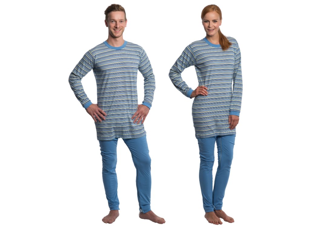 Overal s pyžamovým vzhledem splňuje většinu požadavků na moderní kombinézu v ošetřovatelské péči. Overal je vizuálně k nerozeznání od pyžama. Dělitelný zip na nohavicích velmi usnadňuje pečovateli výměnu inkontinenčního materiálu a ztěžuje samostatné svlékání pacienta. Měkký a k pokožce příjemný materiál zajišťuje maximální pohodlí při ležení i při aktivitě. Horní díl je přišitý ke spodnímu, aby pacienti neměli možnost se svléknout. Tento moderní overal je vhodný pro muže i ženy a dává pacientům pocit běžného pyžama.