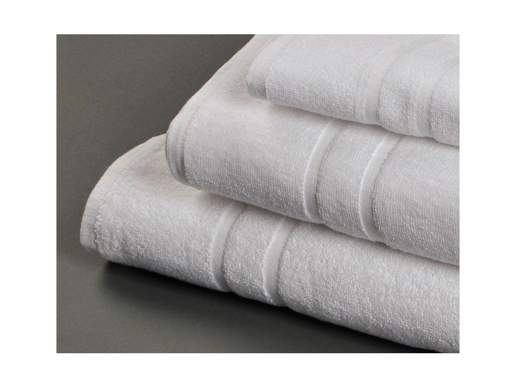 Hotelová osuška 2S z vysokokvalitnej froté tkaniny (silná kratšia dvojitá slučka, dvojité prešitie, schopnosť zvládnuť niekoľko stoviek pracích cyklov),