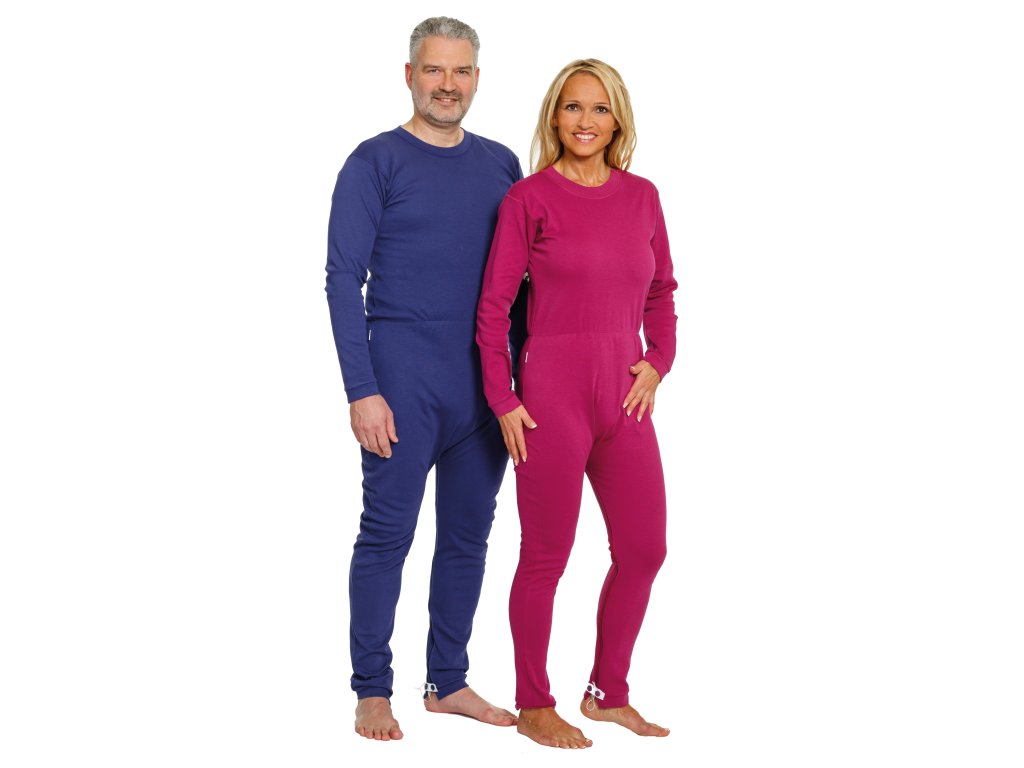 Delený zips na nohaviciach vedie pozdĺž vnútornej strany nohavíc obleku, čo umožňuje rýchle umytie pacienta a rýchlu a jednoduchú výmenu inkontinenčného materiálu alebo kompresívnej bielizne bez toho, aby sa pacient musel úplne vyzliecť. Aby sa zabránilo rozopnutiu zipsu, na manžetách členkov sú patentky, ktoré zároveň fixujú posuvnú platničku zipsu.