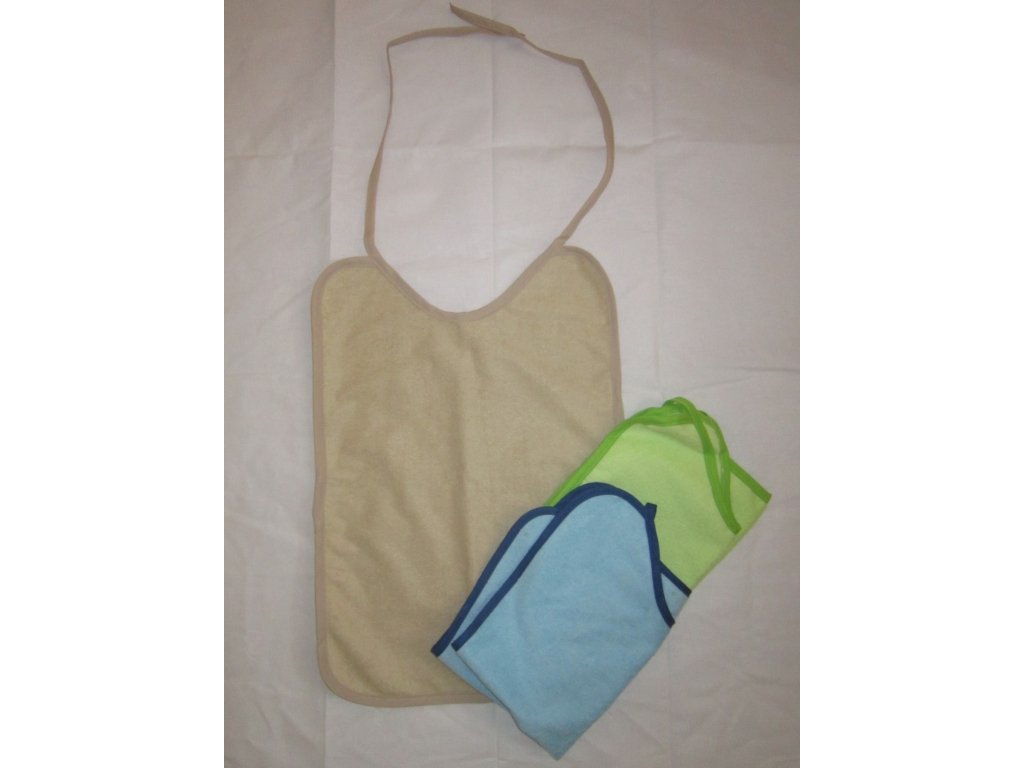 Rozmer 50 x 35 cm na zaväzovanie okolo krku. Vyrába sa vo farbách, krémová, zelená a modrá.
