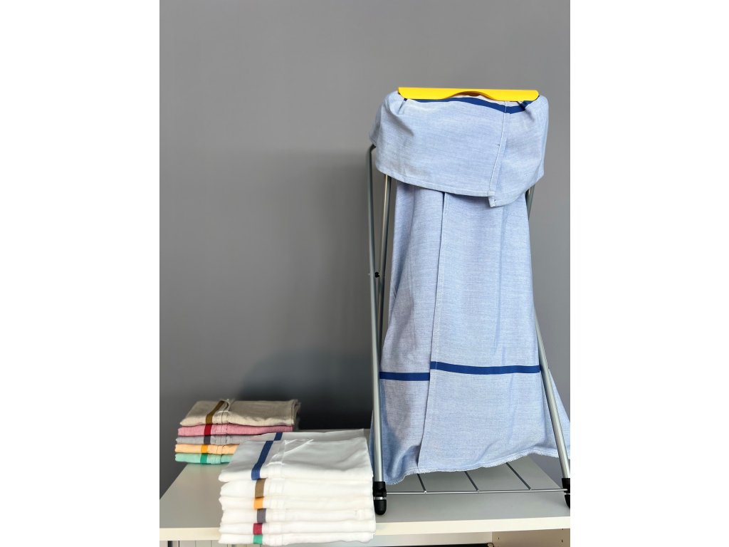 textilní sáček na prádlo , samootevírací - 2 vodorovné barevné pruhy v modré barvě