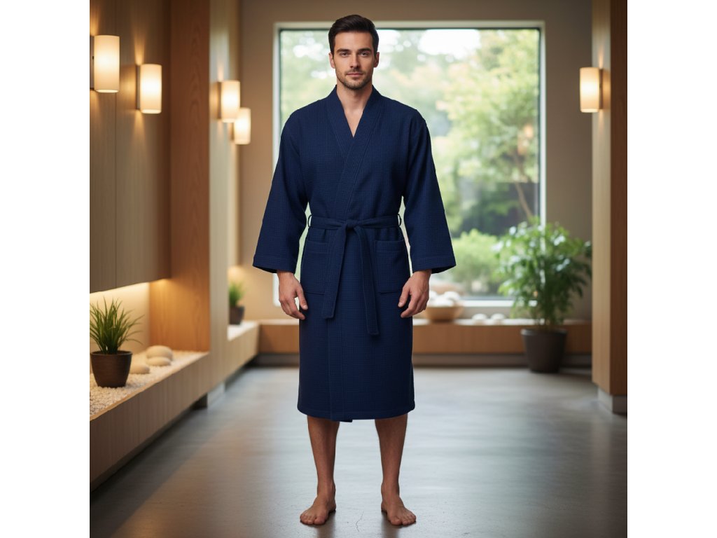 Vaflový župan modrý